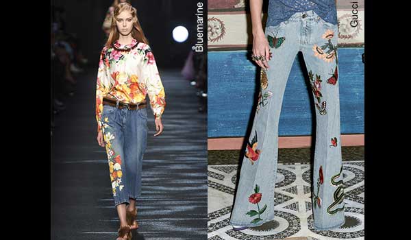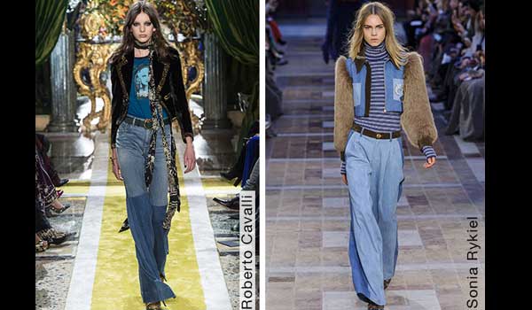 نموذج الجينز الذي يتميز بالساق الواسع قد عاد إلى عالم الأزياء بسبب تنوع أشكاله. من الممكن ارتداءه بسهولة مع جزمة أو مع كعب. يمكنك عرض جميع أحذيتك مع هذا الجينز في الموسم هذا. الجينز الأكثر اغراءً هو الذي يتمتع بخصر عال. هذا المظهر يعود لسنة ١٩٧٠، فأعيد احياؤه هذا الموسم.